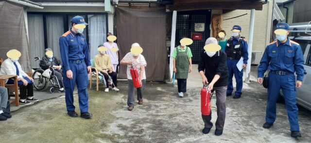 *デイホーム大地~避難訓練* 2025.12.23 イベントお知らせ 令和7年9月中旬、デイホーム大地にて避難訓練をしました。 桐生消防署の方が、お見えになりました。 消火器の使い方を説明していただきました。 利用者様、職員、消火器を使いました。 火の元に気を付けたいと思います。